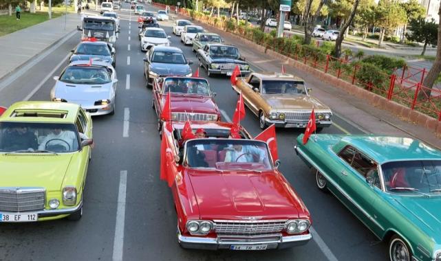 Kayseri Talas'tan klasik araçlarla Cumhuriyet coşkusu