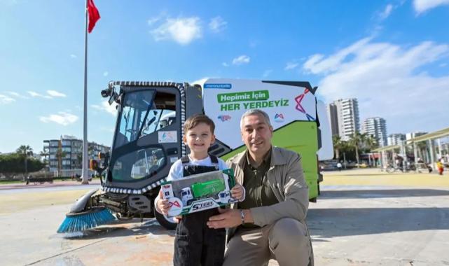 Mersin Büyükşehir Belediyesi, süpürge araçlarına olan sevgisi sosyal medyada paylaşılan 3 yaşındaki Ayaz’ın hayalini gerçeğe dönüştürdü. Minik Ayaz, Büyükşehir Belediyesi’nin çok sevdiği yeşil süpürge kamyonuna binerek, unutamayacağı bir gün yaşadı.