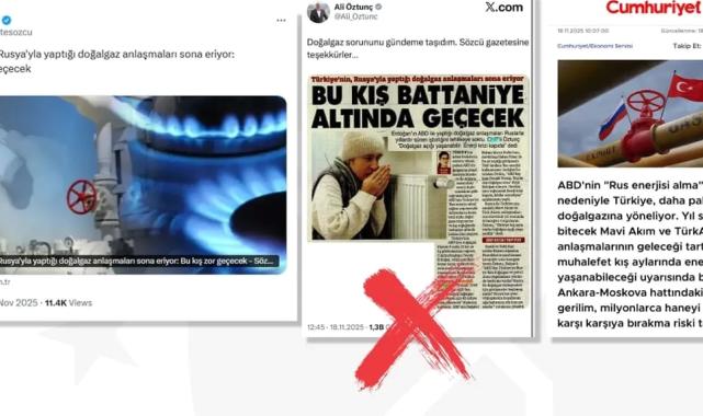 İletişim Başkanlığı Dezenformasyonla Mücadele Merkezi (DMM), Türkiye’nin ABD’den LNG aldığı için Rus gazı tedarikinin duracağı ve Enerji krizinin kapıda olduğu yönündeki iddiaların Dezenformasyon olduğunu duyurdu.Açıklamada, Türkiye’nin sahip olduğu boru hattı, LNG terminali ve doğal gaz depolama altyapısıyla bölgenin en güçlü arz güvenliği kapasitesine sahip ülkelerinden biri olduğu vurgulandı.“RUSYA’DAN GAZ AKIŞI KESİNTİSİZ DEVAM EDİYOR”DMM, Rusya Federasyonu’ndan doğal gaz tedarikinin, ilgili kurumlar arasında yürürlükte olan uzun vadeli sözleşmeler kapsamında planlandığı şekilde sürdüğünü belirtti.Açıklamaya göre ne bugün ne de yaklaşan kış dönemine ilişkin herhangi bir arz güvenliği sorunu veya enerji krizi riski bulunmuyor.Türkiye’nin ABD, Azerbaycan, İran, Cezayir, Katar, Umman gibi ülkelerden hem boru gazı hem LNG tedarik etmesinin, arz güvenliğini çeşitlendirmeye ve tedarik esnekliğini güçlendirmeye yönelik teknik bir tercih olduğu ifade edildi. Bu yaklaşımın rekabeti artırdığı ve Türkiye’nin enerji güvenliğini güçlendirdiği belirtildi.“KRİZ SENARYOLARININ GERÇEKLİĞİ YOK”DMM, öne sürülen enerji krizi senaryolarının hiçbir gerçekliğinin bulunmadığını, enerji arzının çoklu kaynaklarla güvence altına alındığını vurguladı.Kamuoyunun yanıltıcı haber ve sosyal medya paylaşımlarına değil, kurumların resmî açıklamalarına itibar etmesi gerektiği hatırlatıldı.